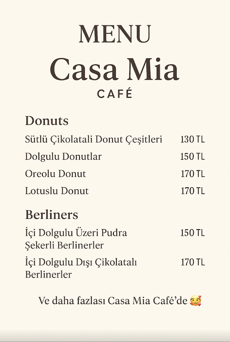 Welcome to Casamia donut & berliner & coffee & bakery, a delightful gem nestled in Bodrum, perfect for those with a sweet tooth. The menu boasts an impressive selection of artisanal creations, highlighting their signature Berliner and donuts. Each treat is meticulously crafted to ensure a heavenly experience.